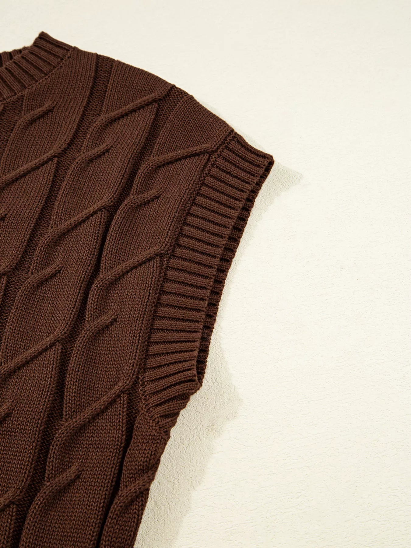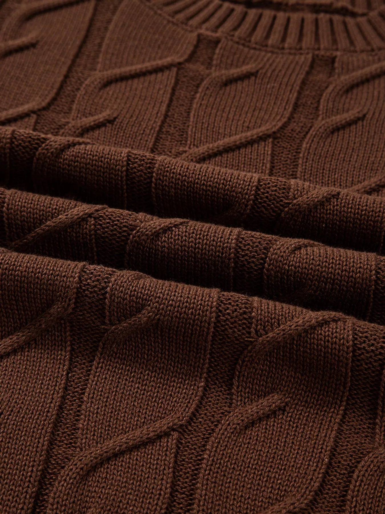 Cable Texture Crew Neck Short Sleeve Sweater Top