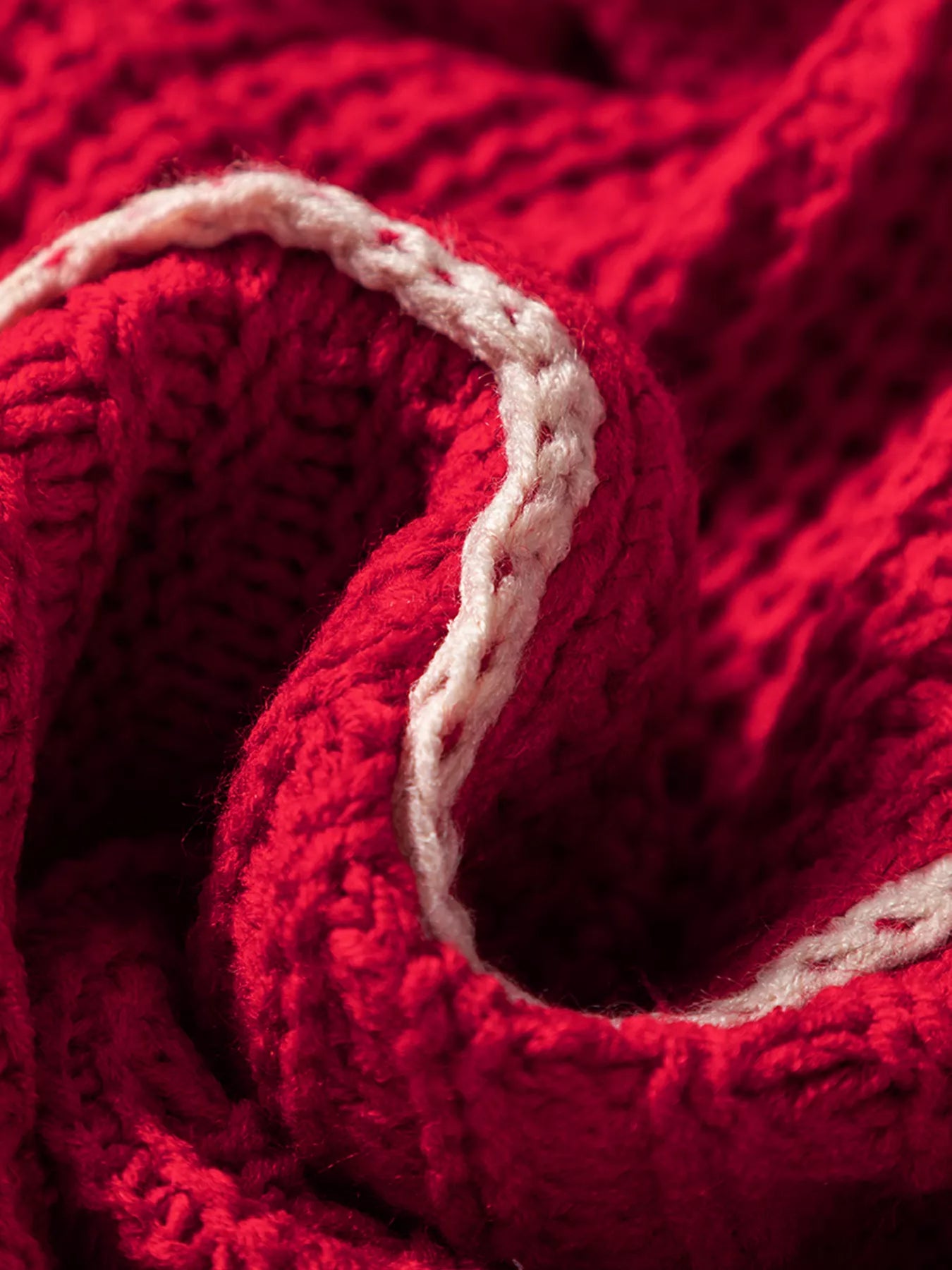 Contrast Trim Textured Knit Drawstring Hooded Sweater