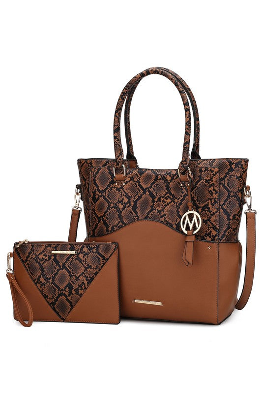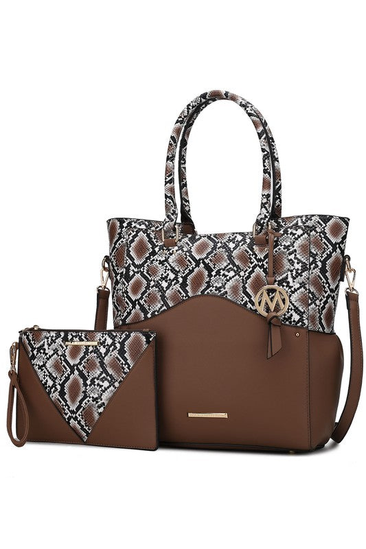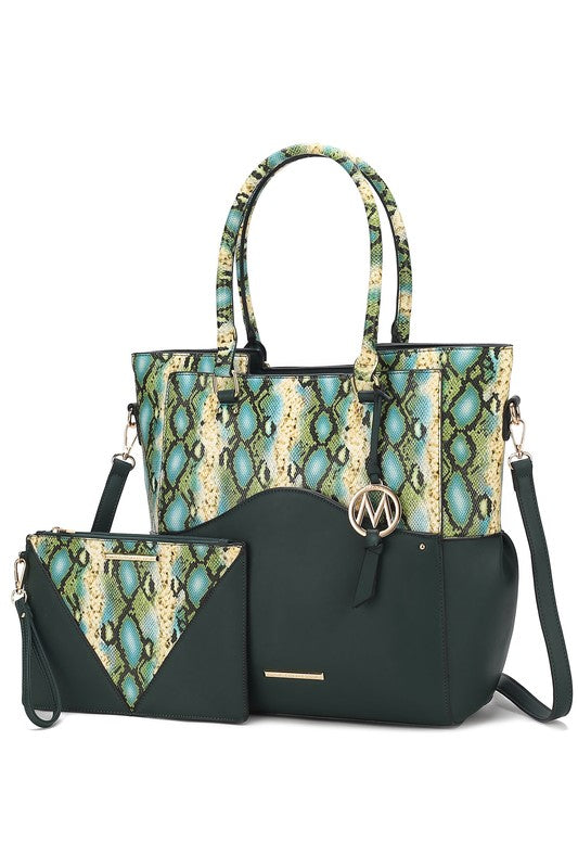 MKF Iris Snake Tote Bag Wristlet Pouch by Mia K